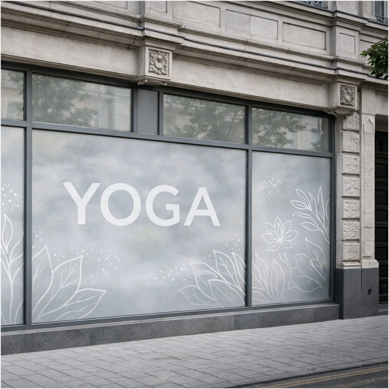 Perforated self-adhesive film that reduces incoming light by about 50%. Allows visibility from the inside while maintaining visible graphics from the outside.